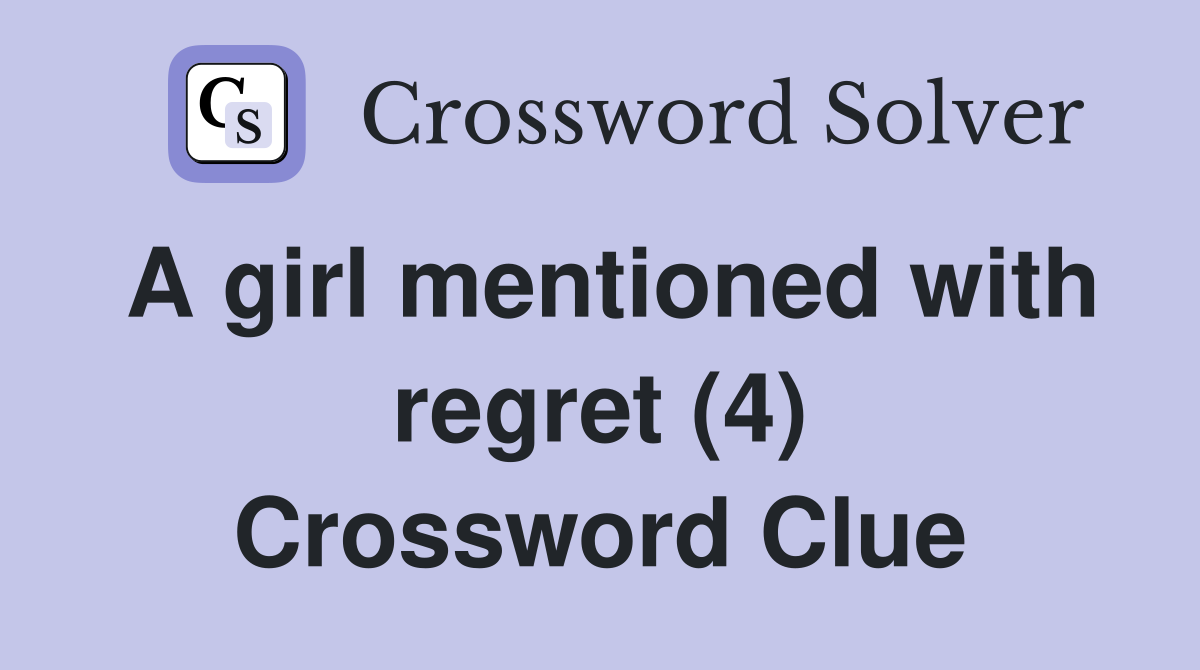 A girl mentioned with regret (4) Crossword Clue Answers Crossword