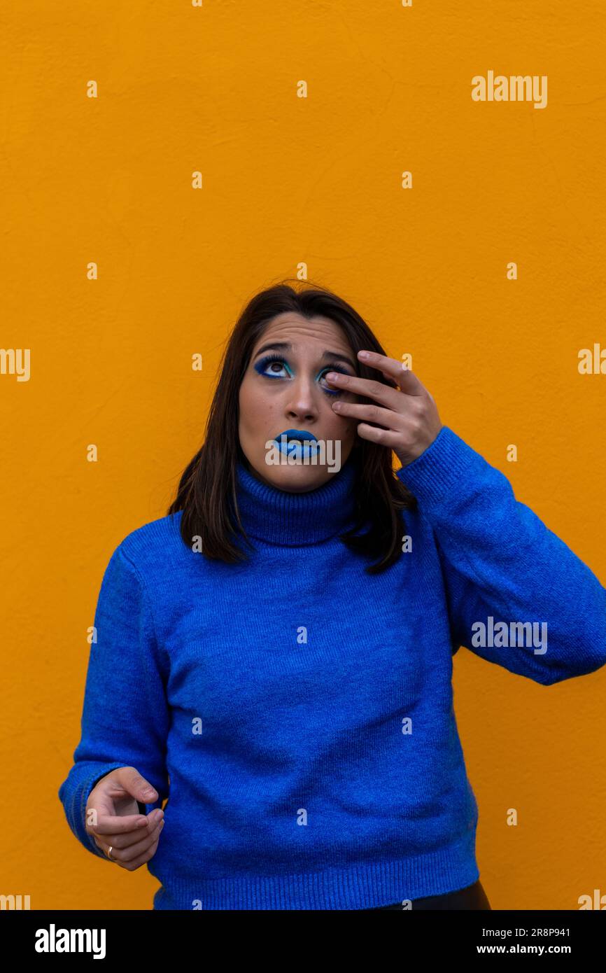 Une jeune femme caucasienne portant une chemise bleue avec une