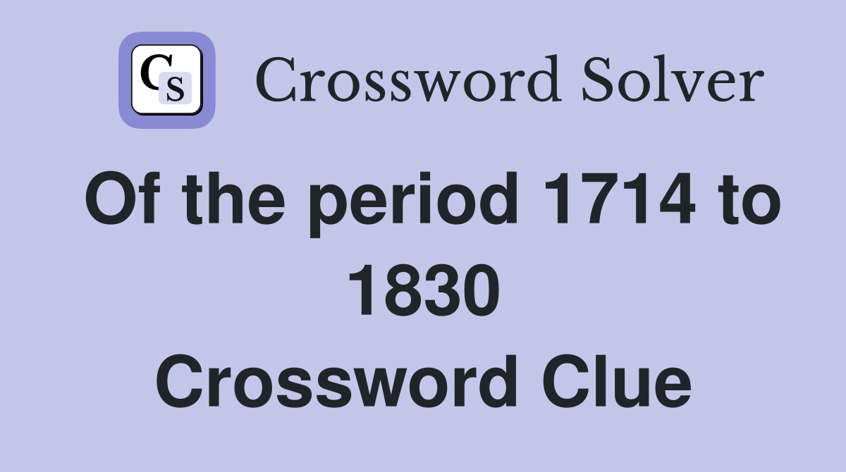 Of the period 1714 to 1830 Crossword Clue Answers Crossword Solver