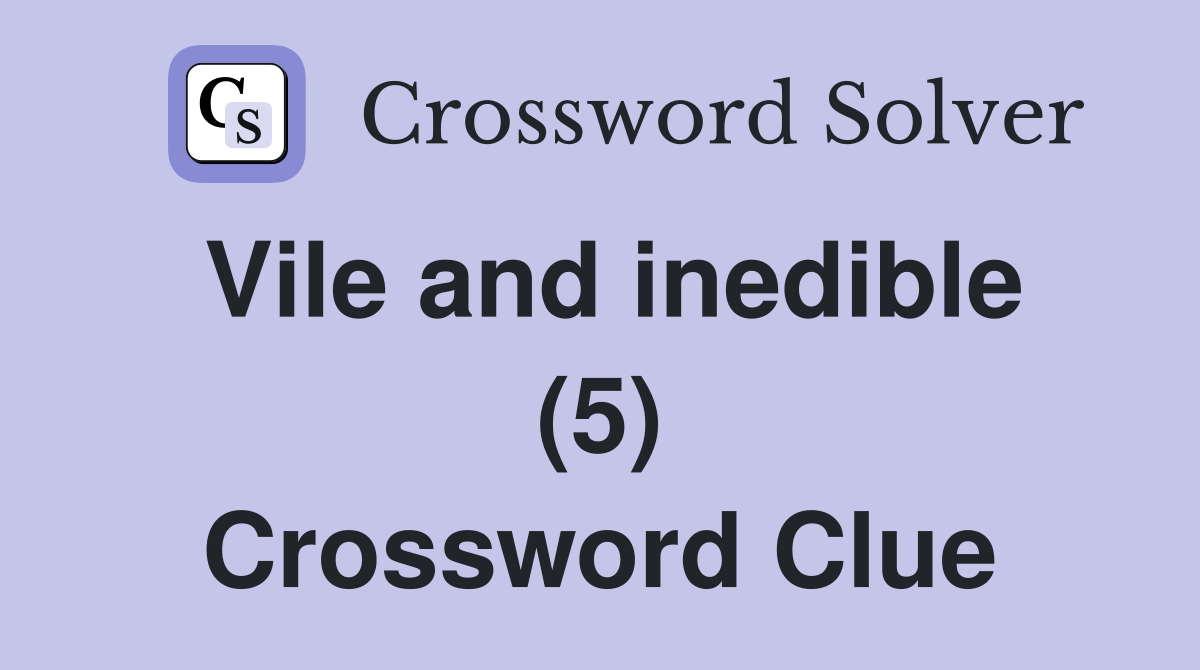 Vile and inedible (5) Crossword Clue Answers Crossword Solver