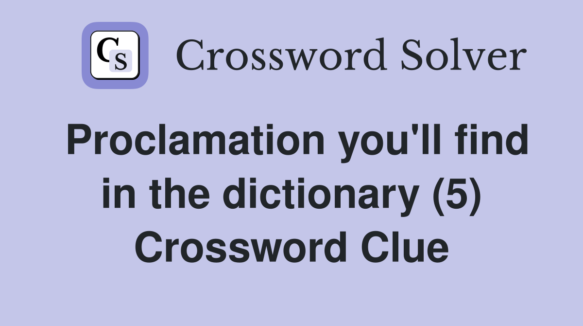 Proclamation you #39 ll find in the dictionary (5) Crossword Clue Answers