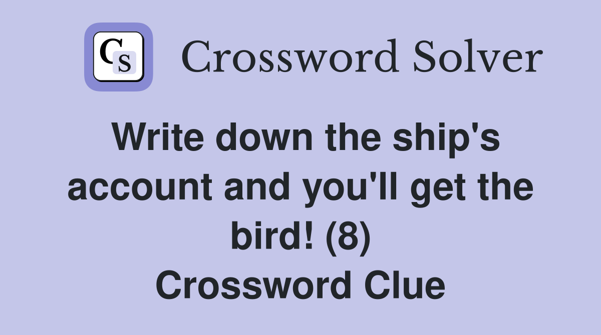 Write down the ship #39 s account and you #39 ll get the bird (8) Crossword