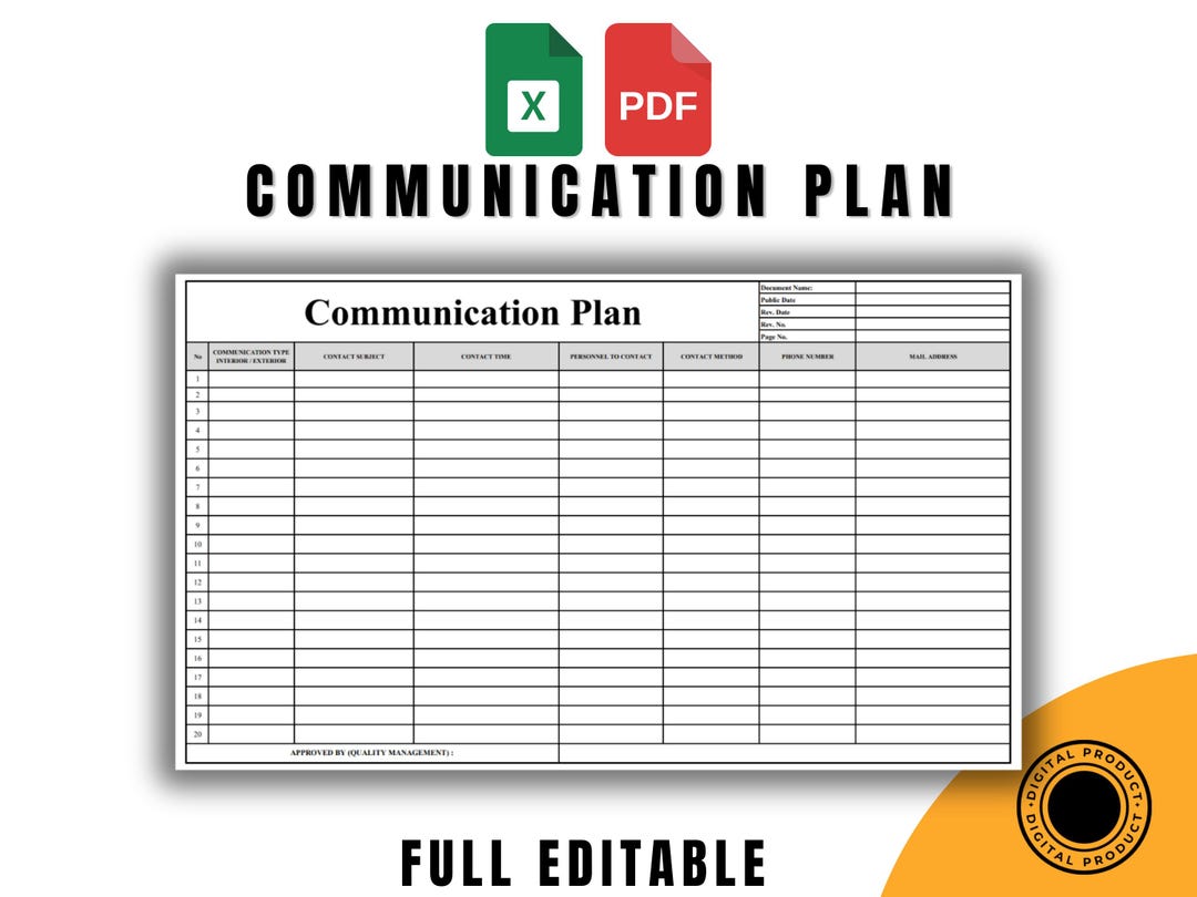 Internal External Communication Plan Template Editable Excel Printable