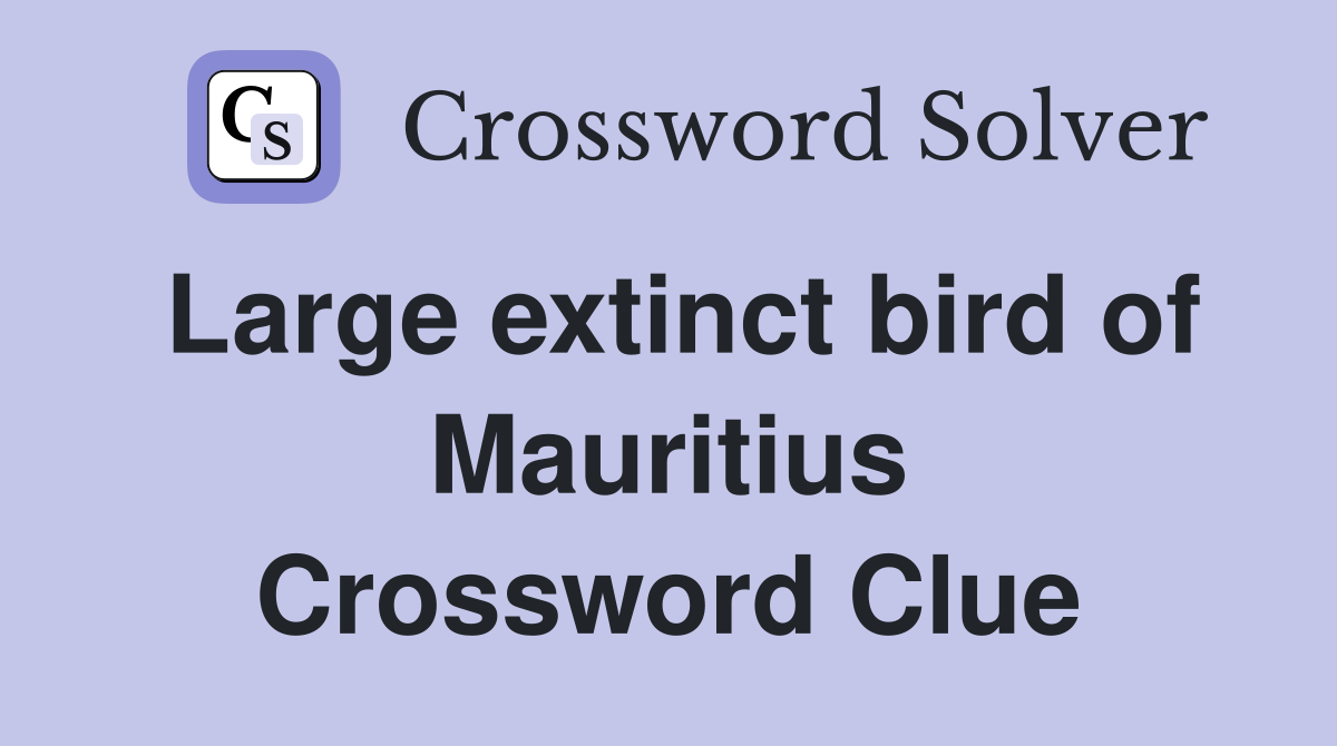 Large extinct bird of Mauritius Crossword Clue Answers Crossword Solver