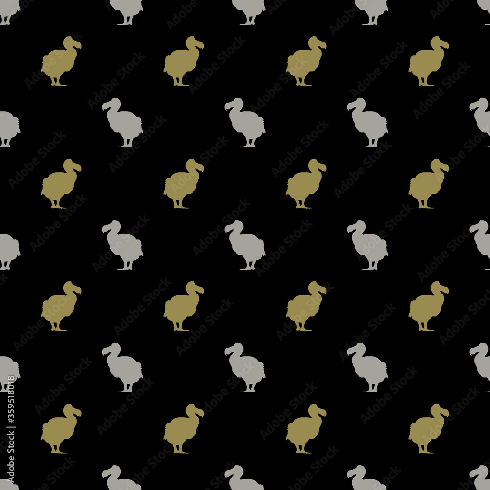 Seamless geometrical pattern with small silhouettes of dodo (Raphus