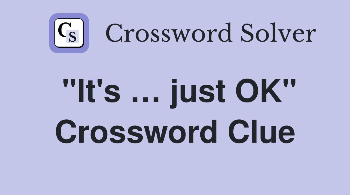 quot It #39 s just OK quot Crossword Clue Answers Crossword Solver