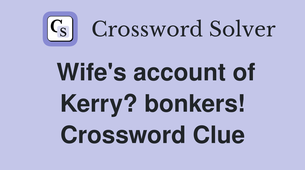 Wife #39 s account of Kerry? bonkers Crossword Clue Answers Crossword
