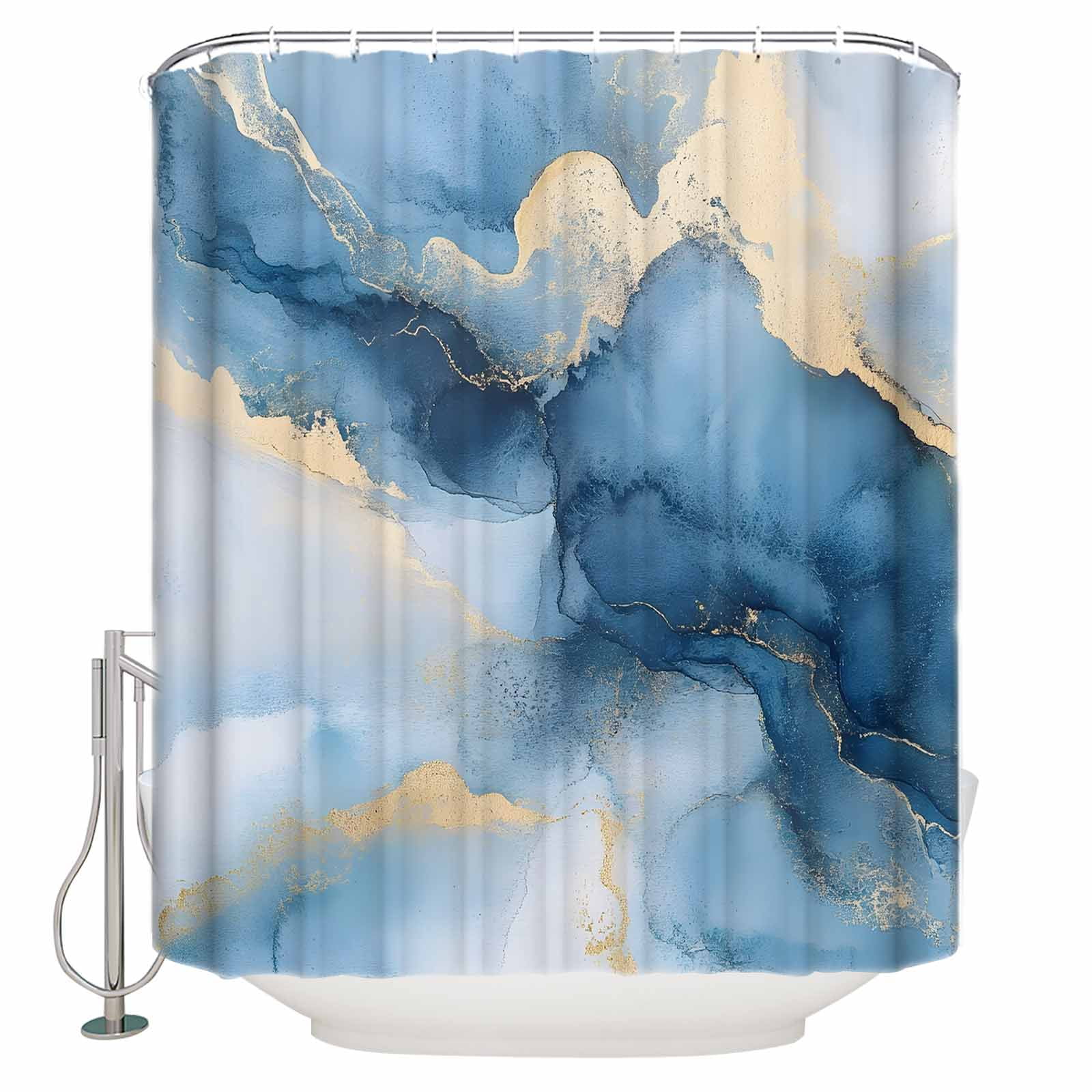 Extra Long Shower Curtain 72x96 Inch Blue Marble Shower Curtain