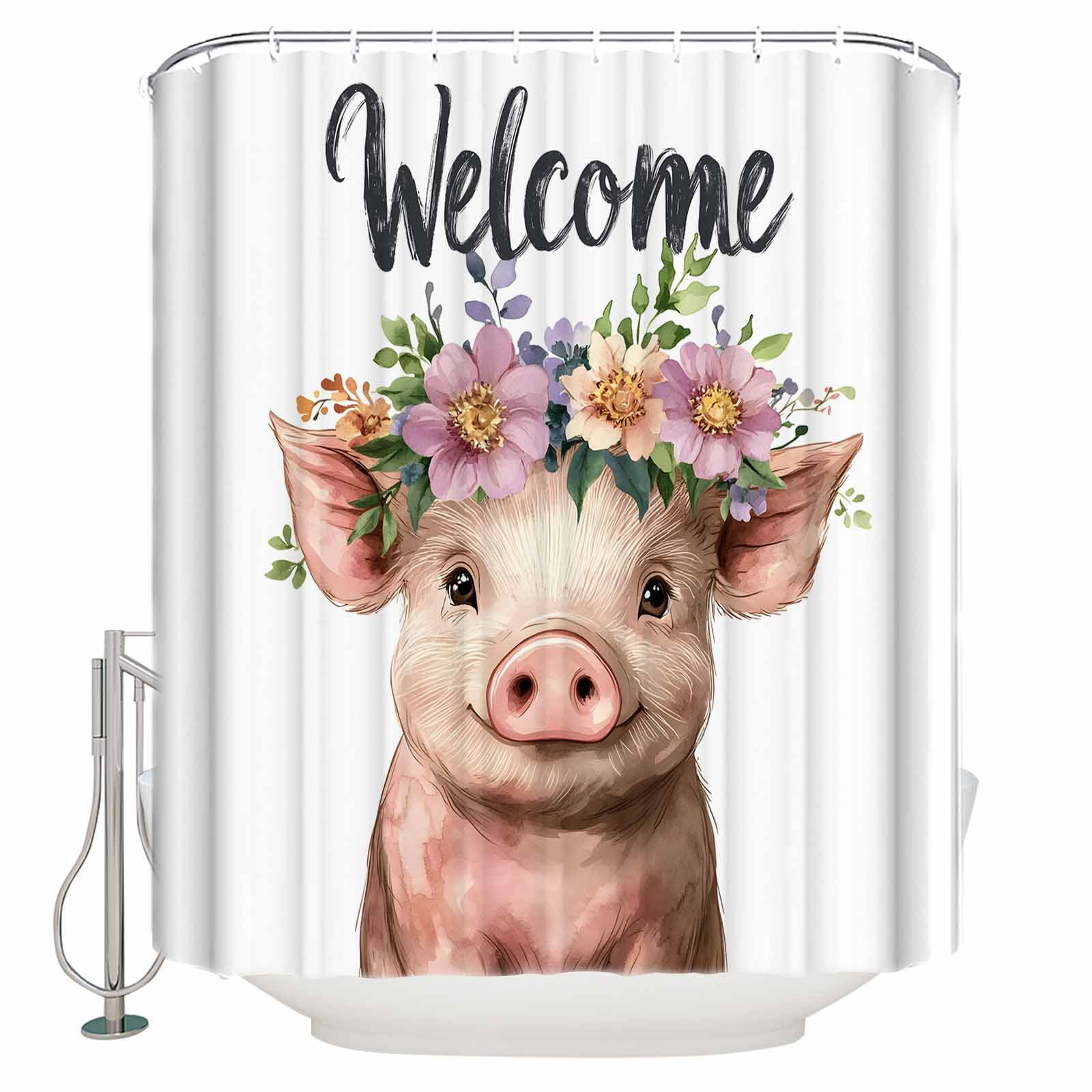 Extra Long Shower Curtain 72x96 Inch Pig Flower Floral Shower Curtain