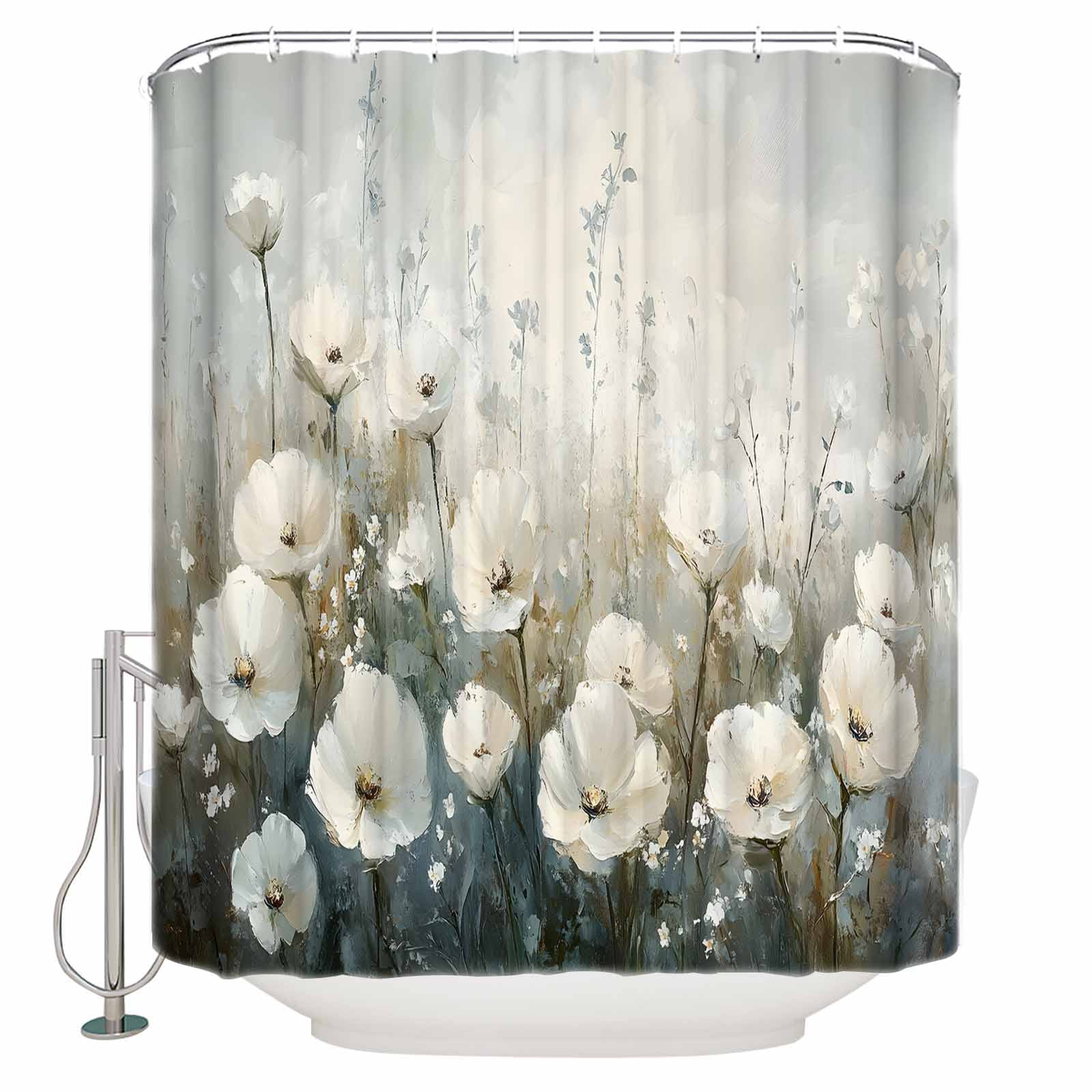 Extra Long Shower Curtain 72x84 Inch Retro Flower Shower Curtain
