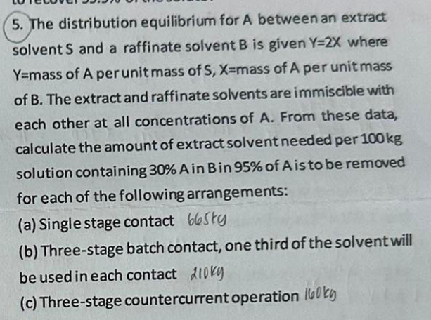 5 the distribution equilibrium for a between an extract solvent s and a