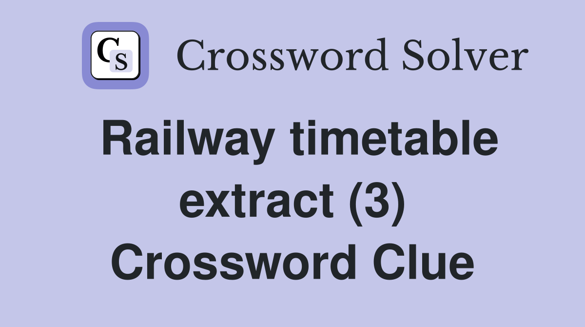 Railway timetable extract (3) Crossword Clue Answers Crossword Solver