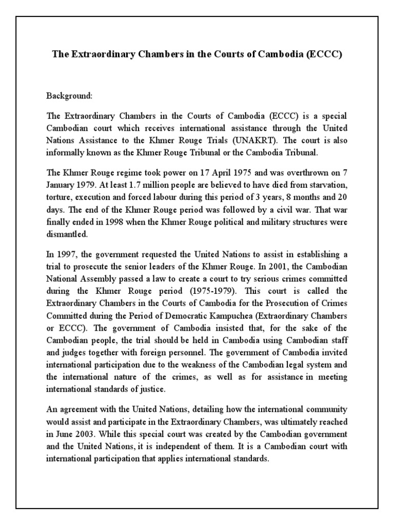 Extraordinary Chambers in the Courts of Cambodia (ECCC) United Nations