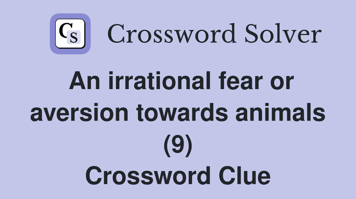 An irrational fear or aversion towards animals (9) Crossword Clue