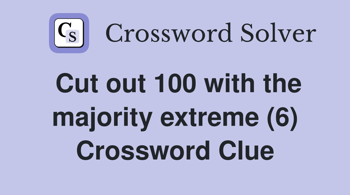 Cut out 100 with the majority extreme (6) Crossword Clue Answers