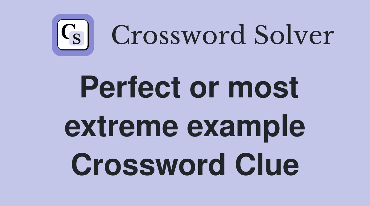 Perfect or most extreme example Crossword Clue Answers Crossword Solver