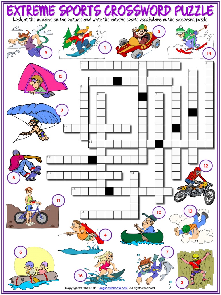 Extreme Sports Crosswords Word Searches Bingo Cards WordMint