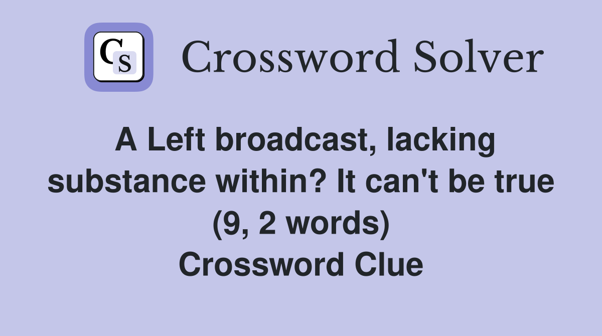 A Left broadcast lacking substance within? It can #39 t be true (9 2