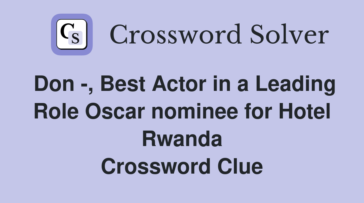 Don Best Actor in a Leading Role Oscar nominee for Hotel Rwanda