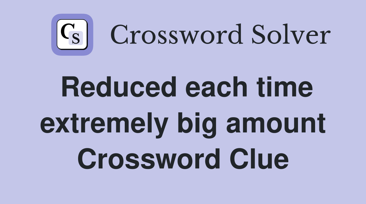 Reduced each time extremely big amount Crossword Clue Answers