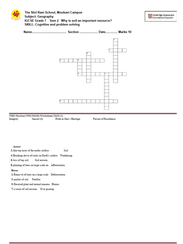 IG 7 Sem 2 Ws Soil Crossword ONLINE PDF