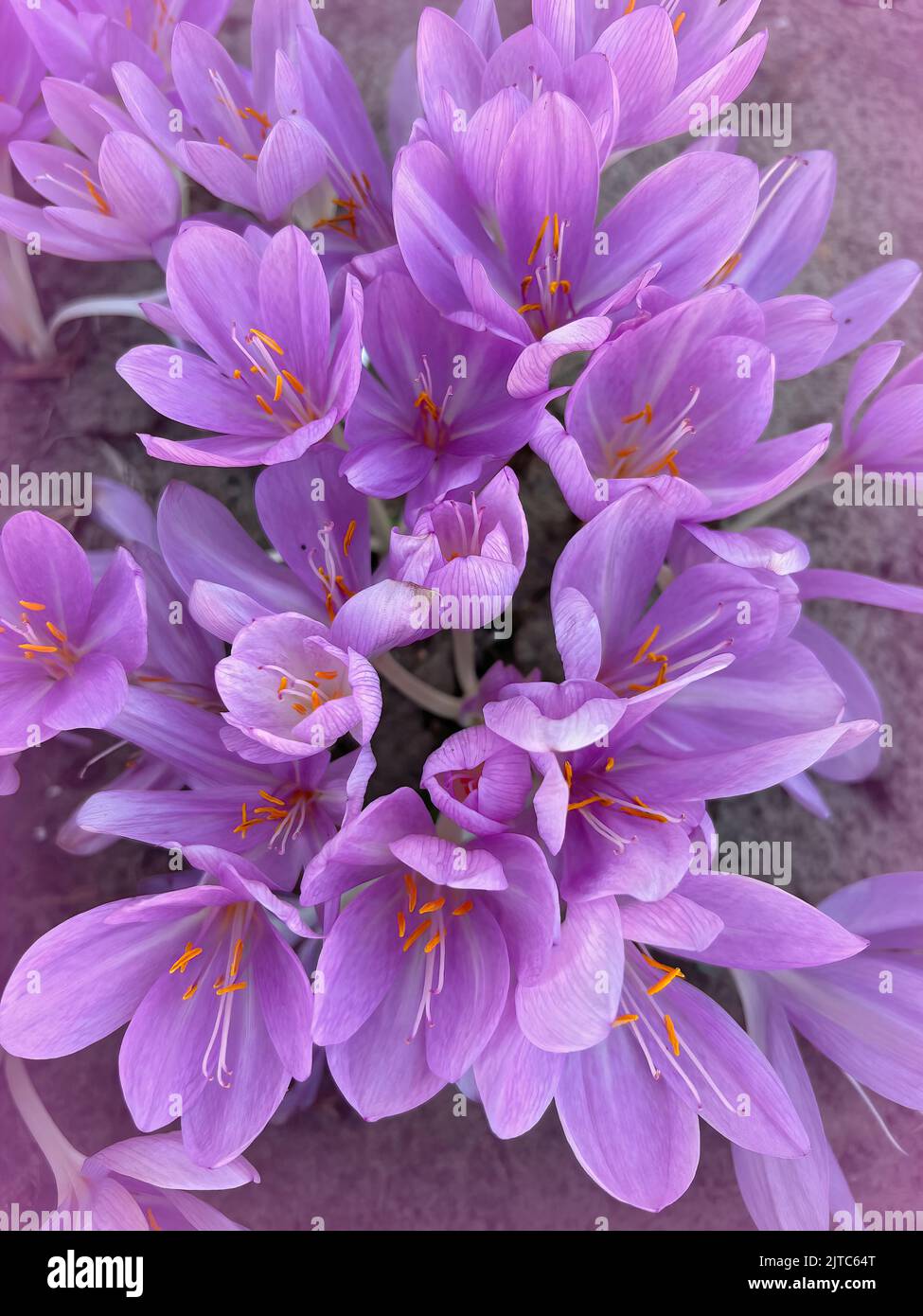 Closeup on fresh emerged light purple flowers of the toxic autumn