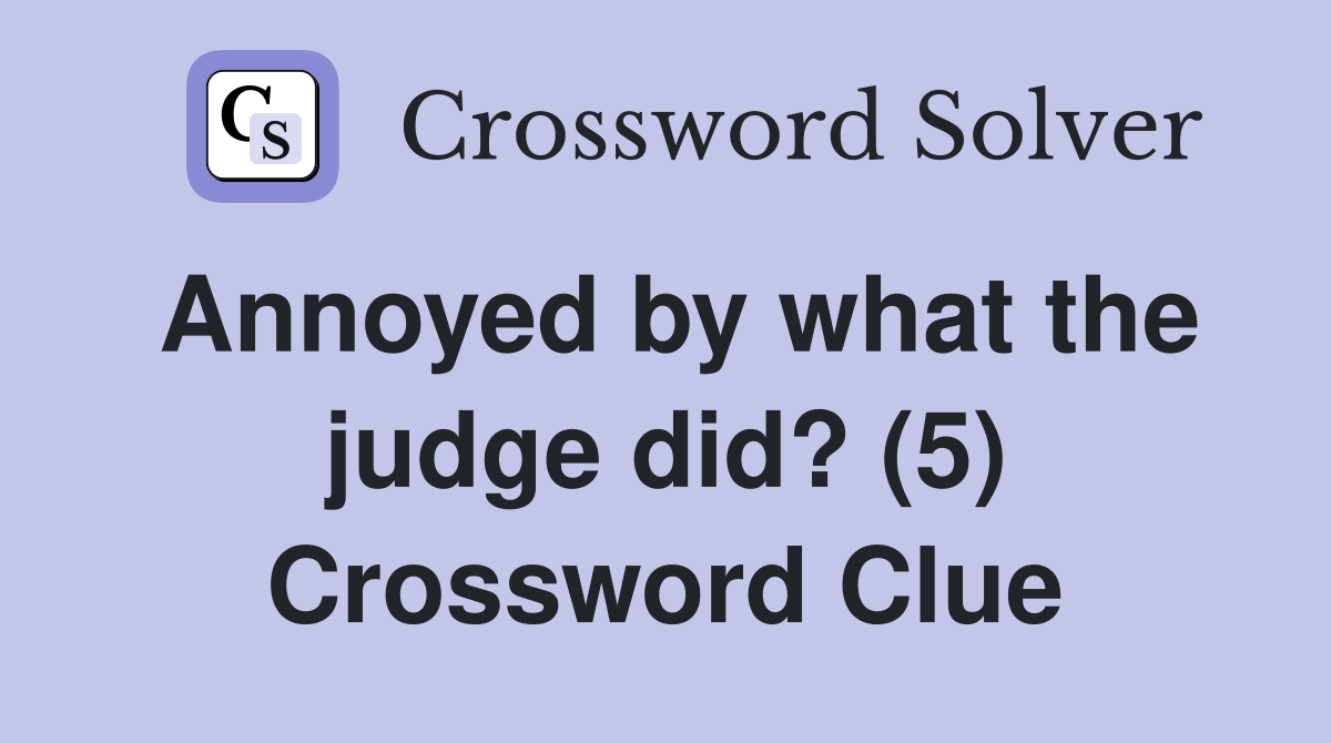 Annoyed by what the judge did? (5) Crossword Clue Answers Crossword
