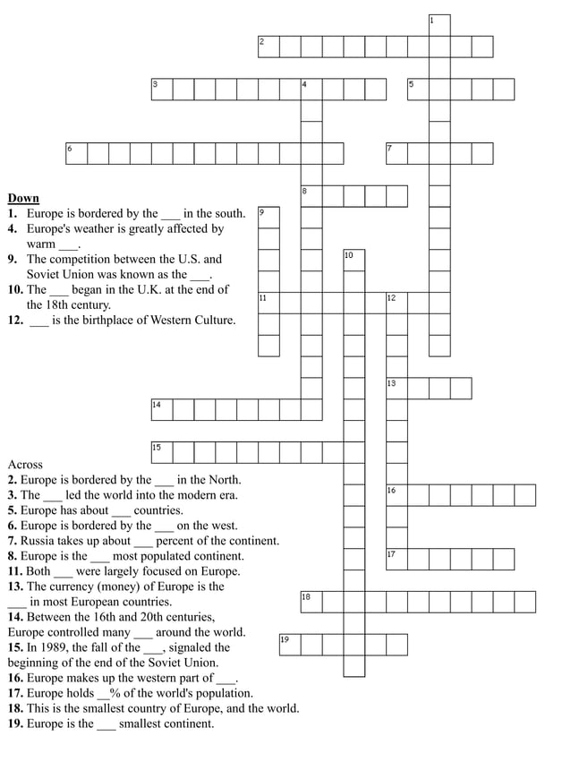 Geography of Europe Crossword by TheLittleTeachingBug TPT