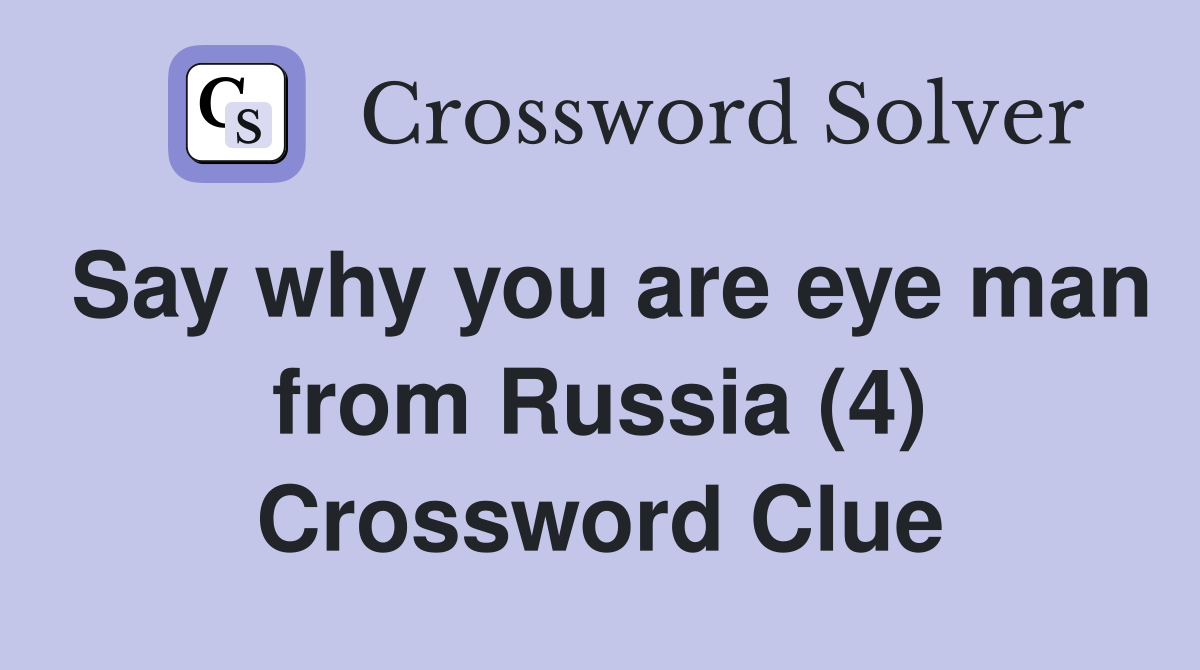 Say why you are eye man from Russia (4) Crossword Clue Answers