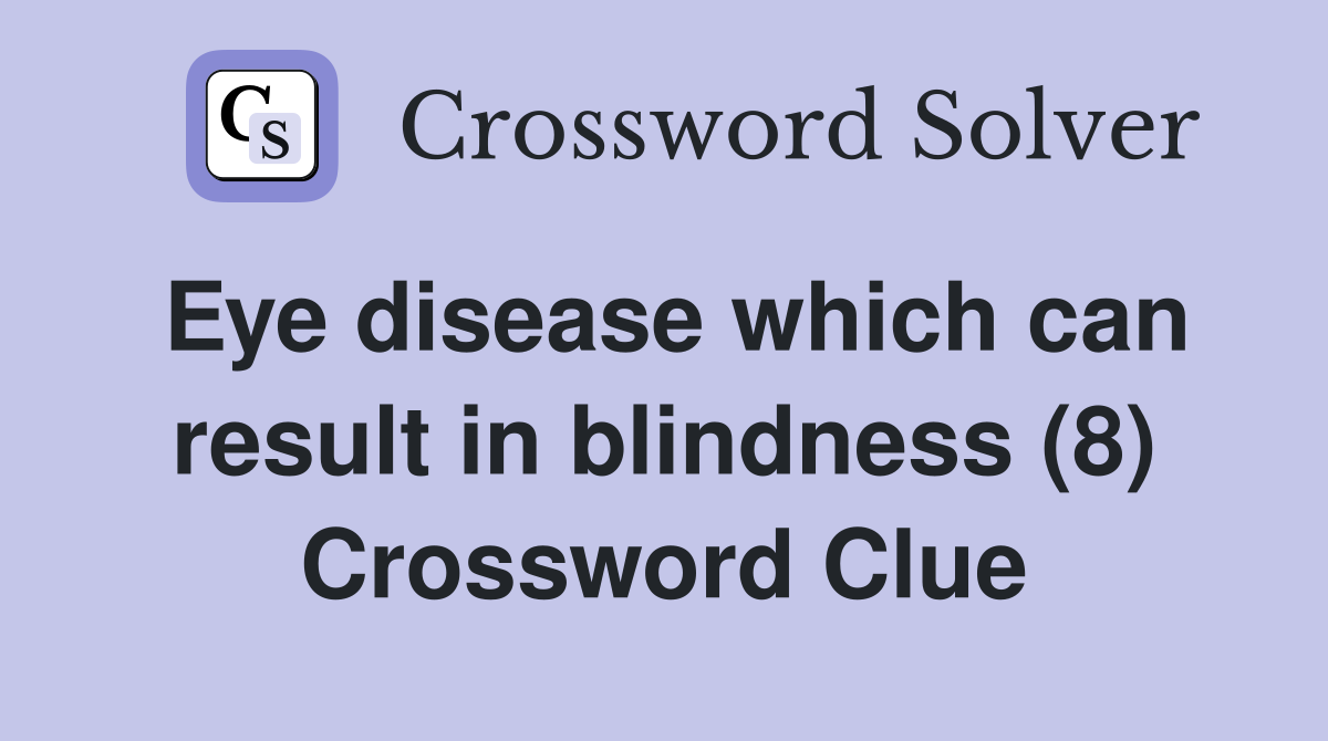 Eye disease which can result in blindness (8) Crossword Clue Answers