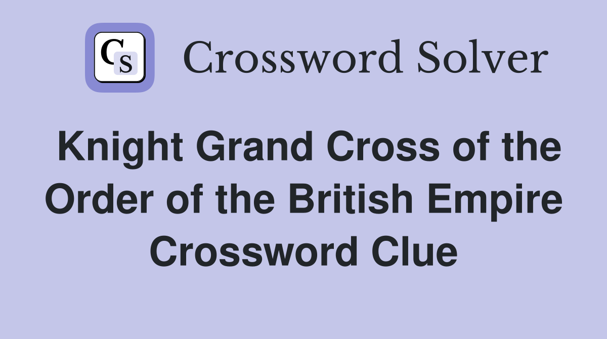 Knight Grand Cross of the Order of the British Empire Crossword Clue
