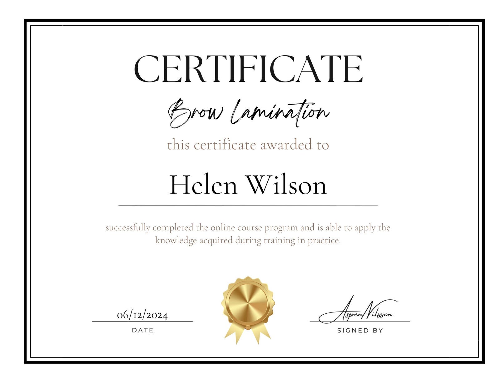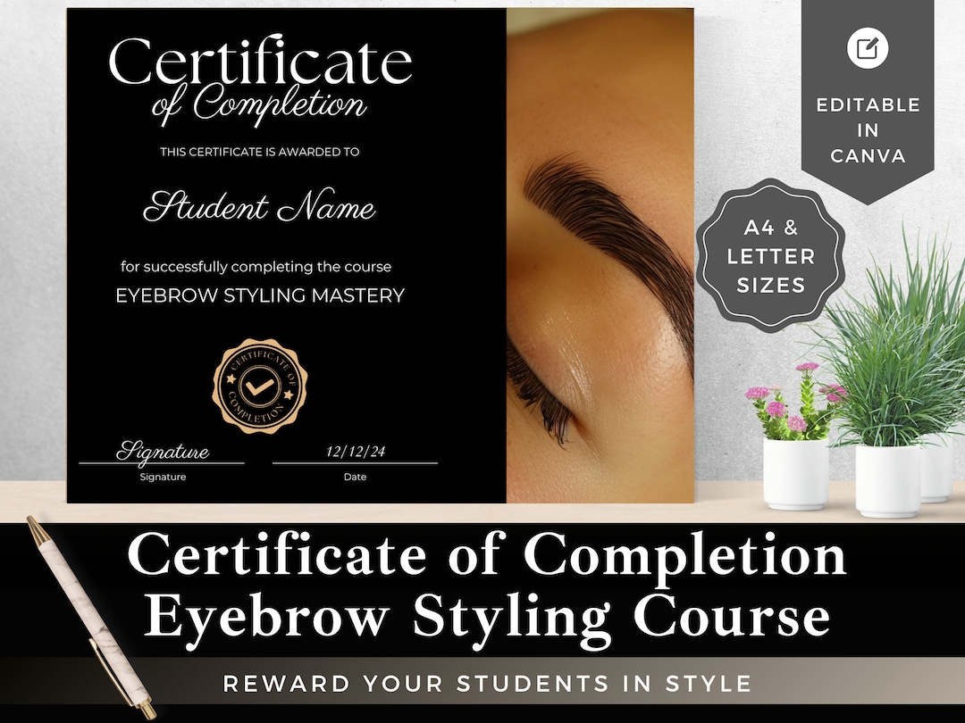 Certificate of Completion for Eyebrow Styling Course Certificate