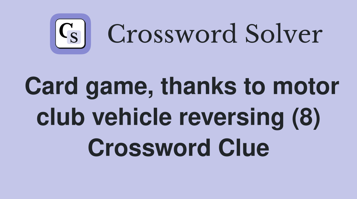 Card game thanks to motor club vehicle reversing (8) Crossword Clue