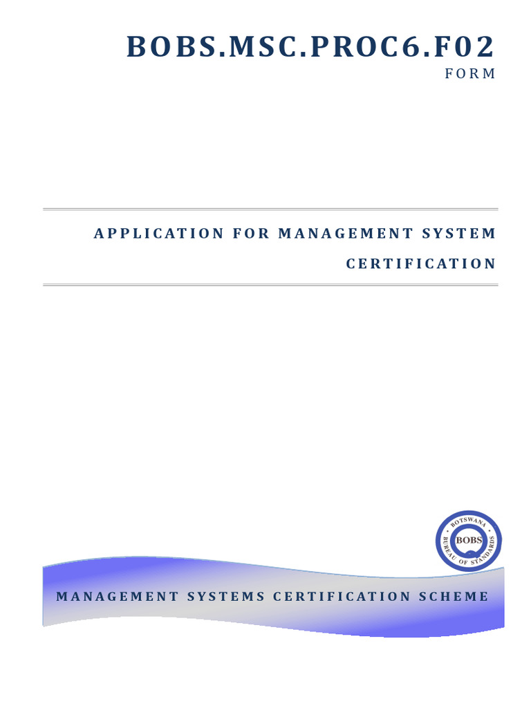 Bobs Msc proc6 f02 Application For Management System Certification