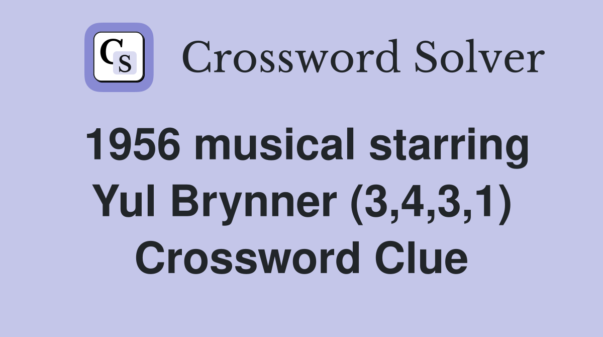 1956 musical starring Yul Brynner (3 4 3 1) Crossword Clue Answers