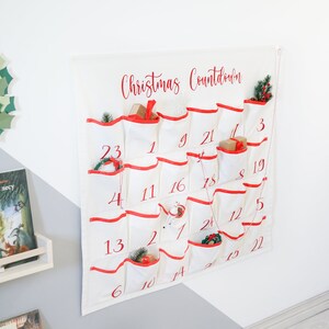 Wall Hanging Sack Advent Calendar Red White Fabric Christmas Countdown