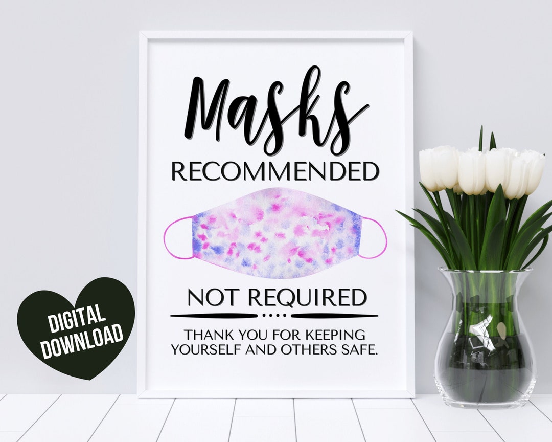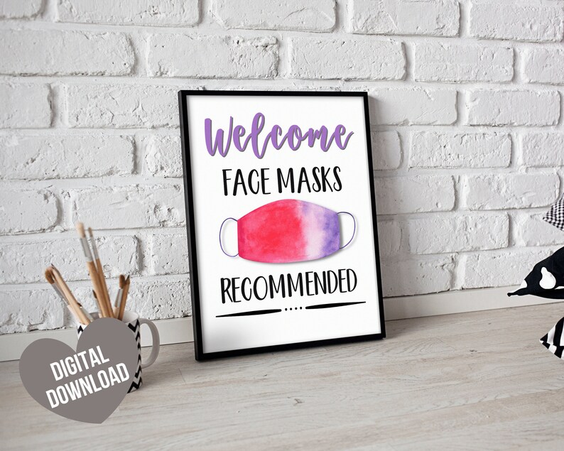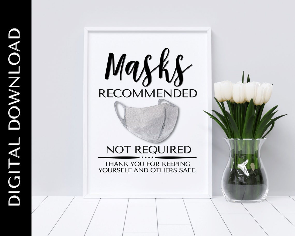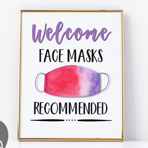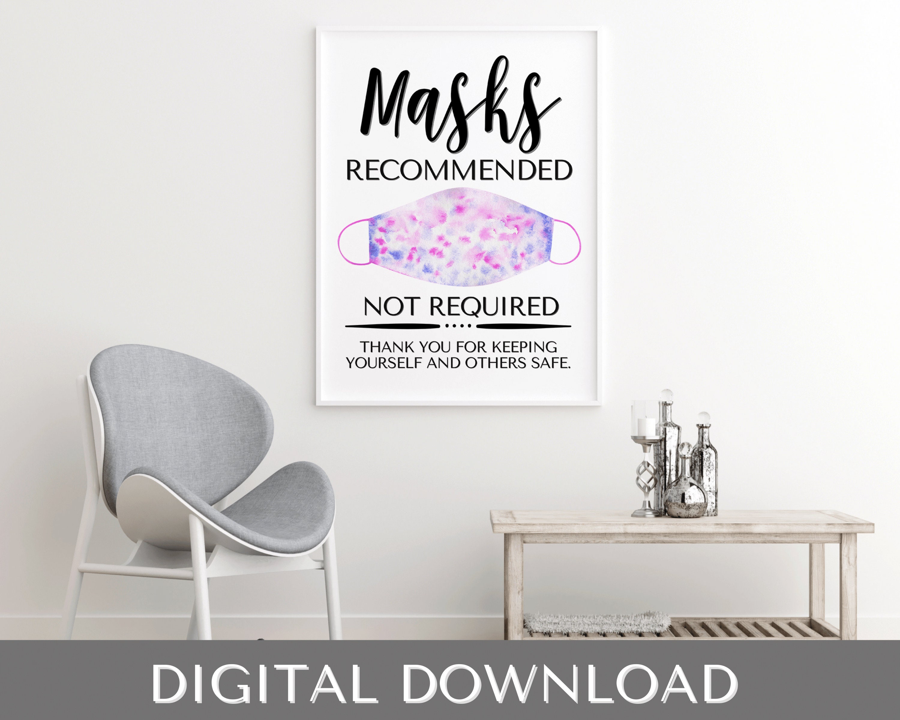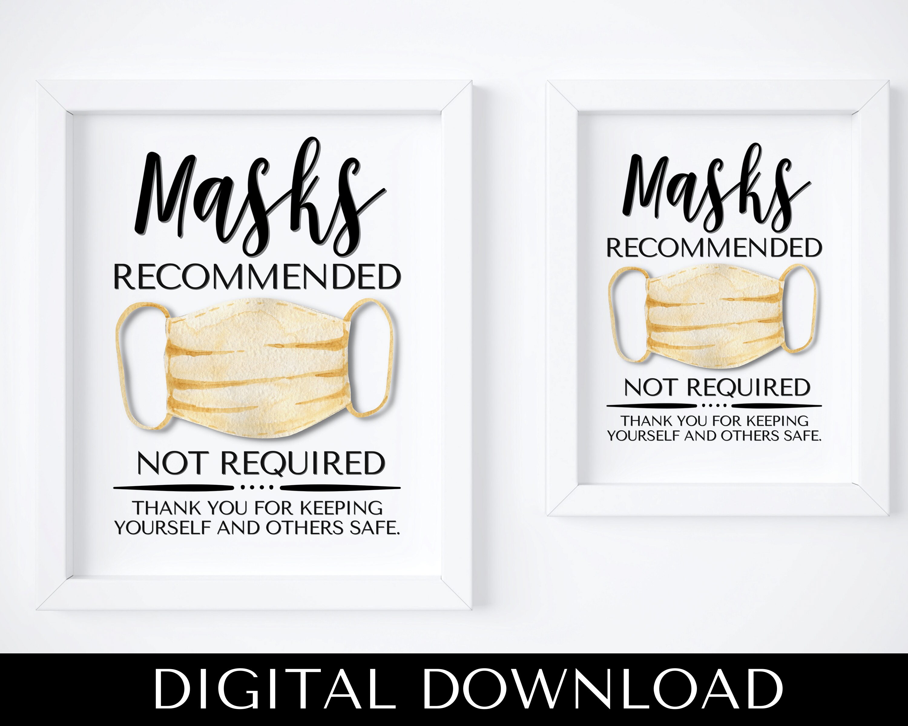 Face Mask Sign PRINTABLE Wear a Mask Sign Mask Recommended Sign Etsy