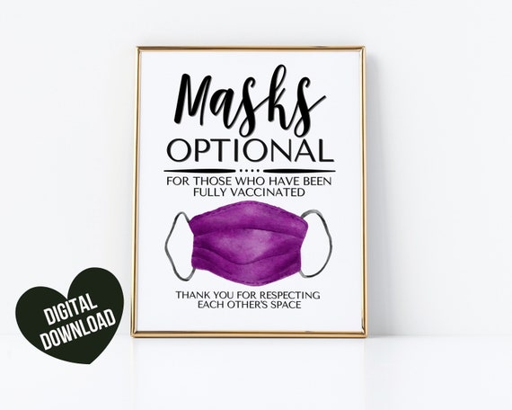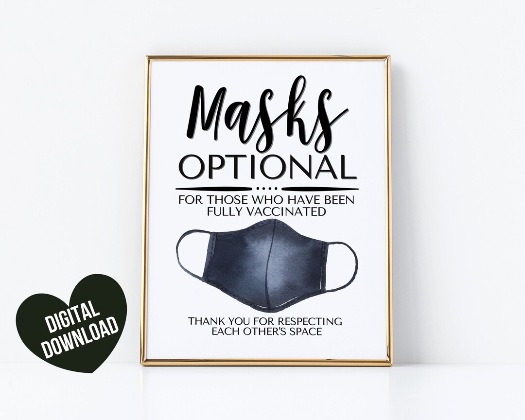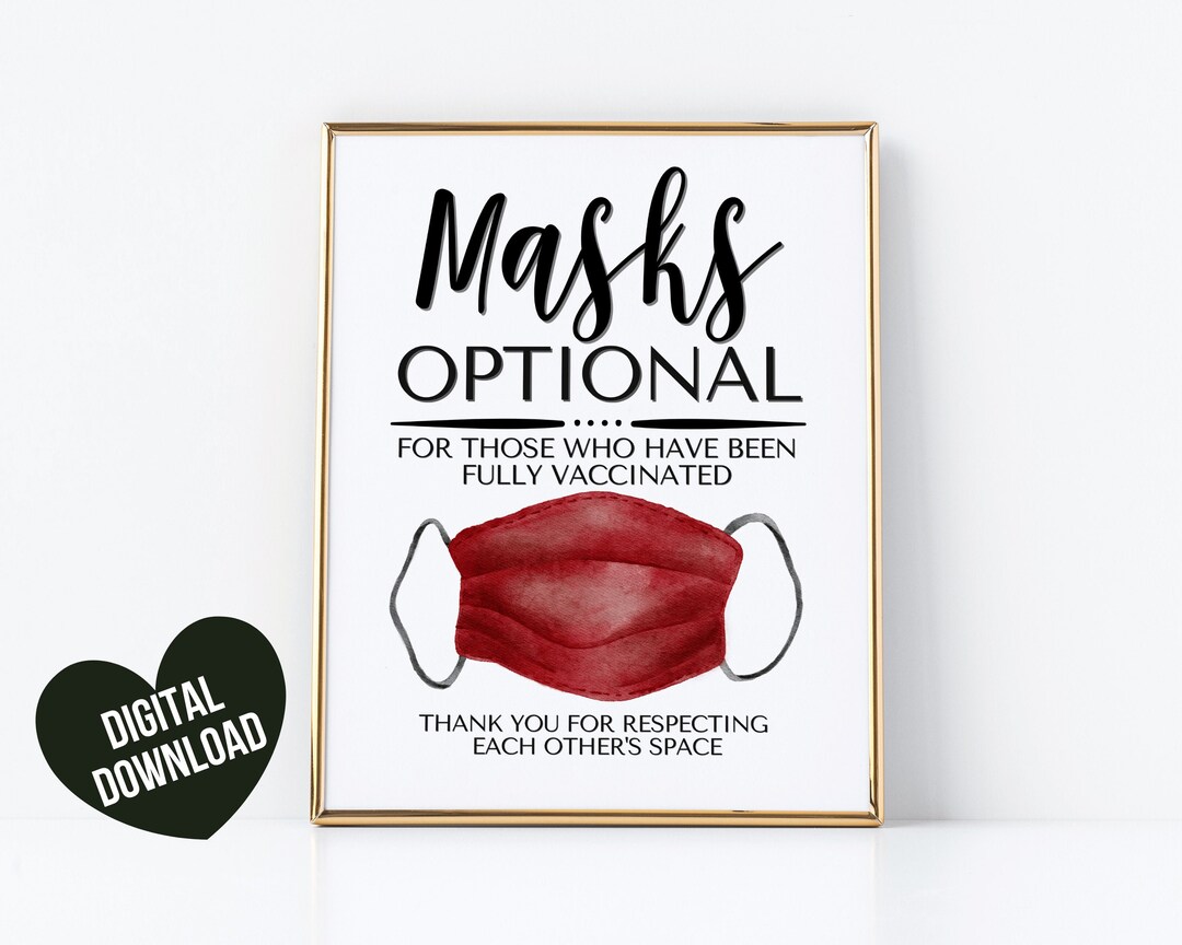 Face Mask Sign PRINTABLE Face Masks Optional If Vaccinated Etsy