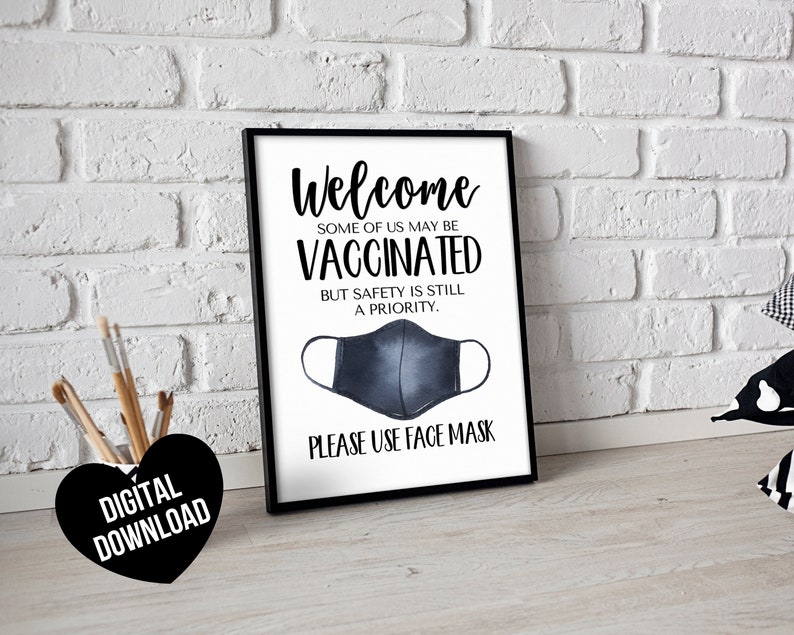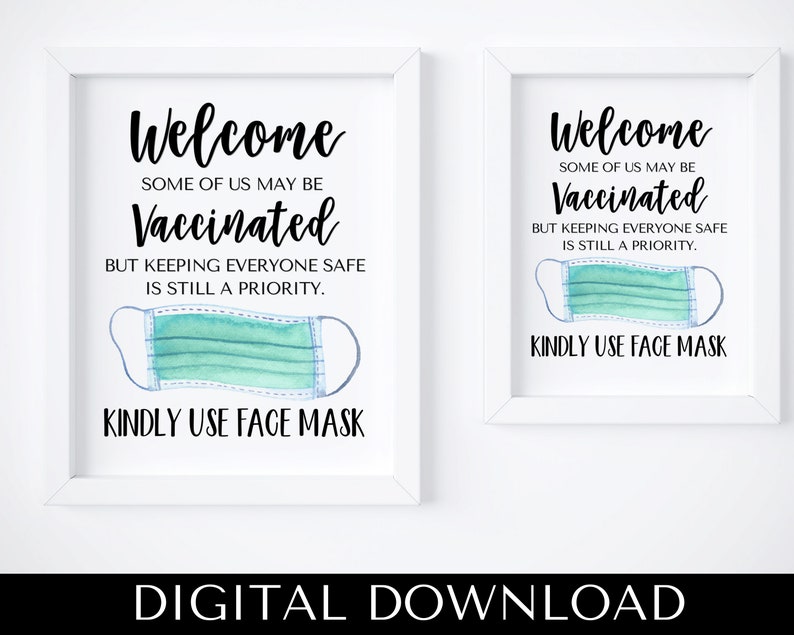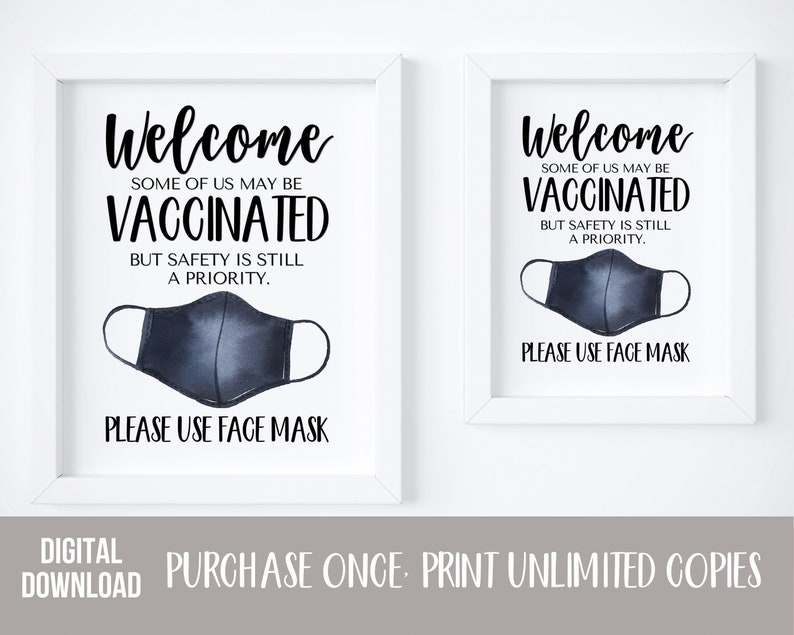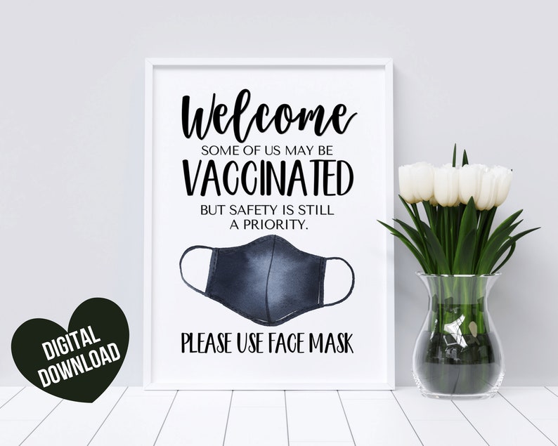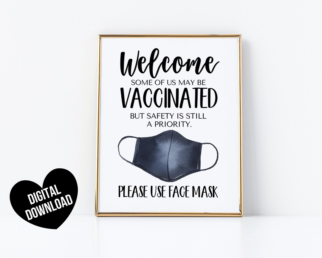 Party Supplies Face Mask Sign PRINTABLE Wear a Mask Sign Vaccinated