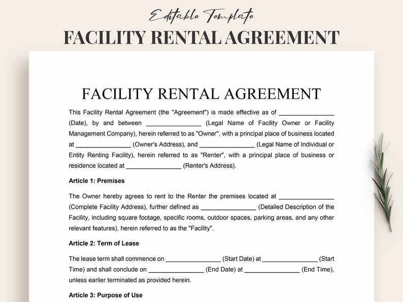Facility Rental Contract Template Customizable Venue Lease Contract