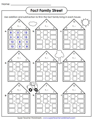 Fact Family Worksheets for First Grade Activity Shelter Fact family