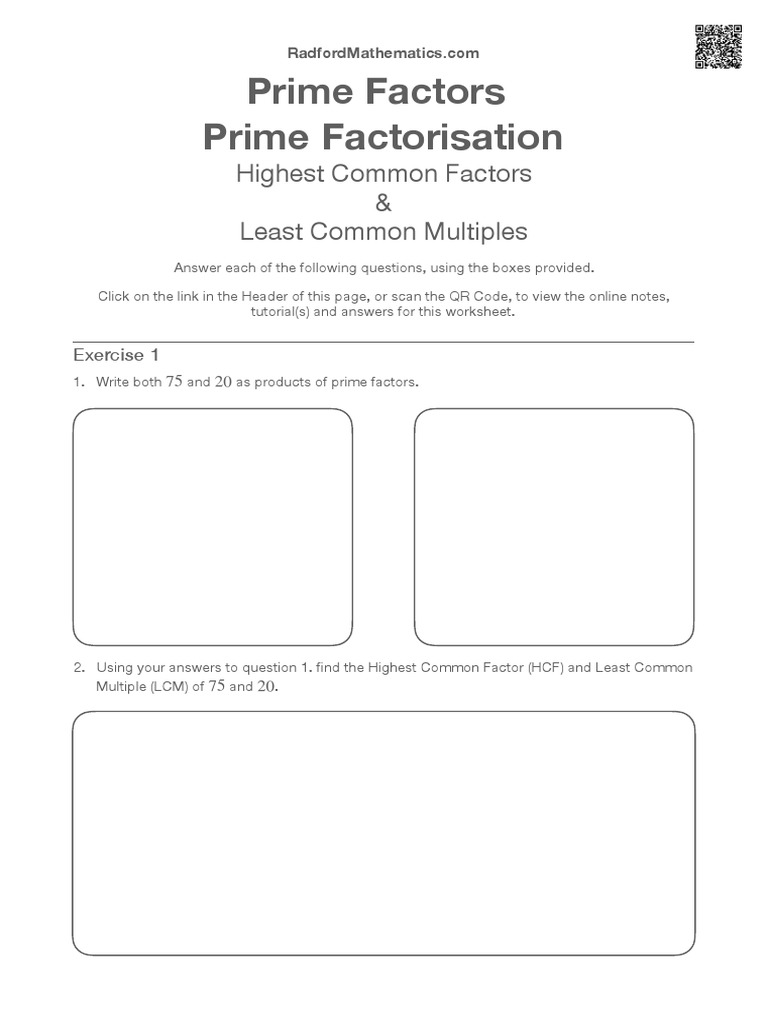 Prime Factorisation HCF LCM Worksheet 1 PDF Algebra Elementary