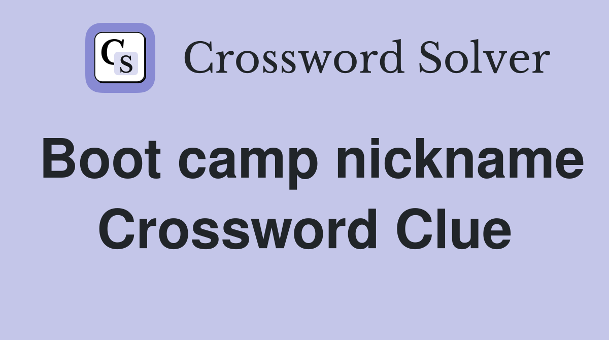 Boot camp nickname Crossword Clue Answers Crossword Solver