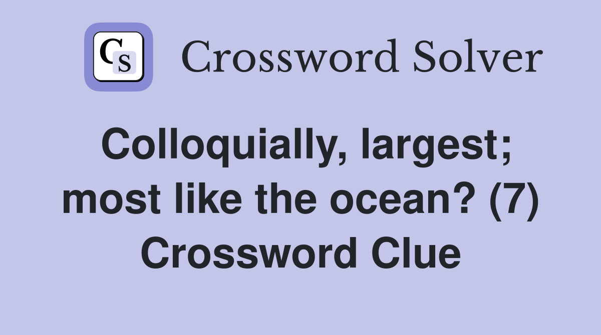 Colloquially largest most like the ocean? (7) Crossword Clue