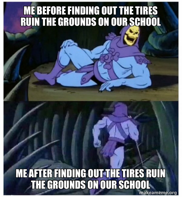 me before finding out the tires ruin the grounds on our school me after