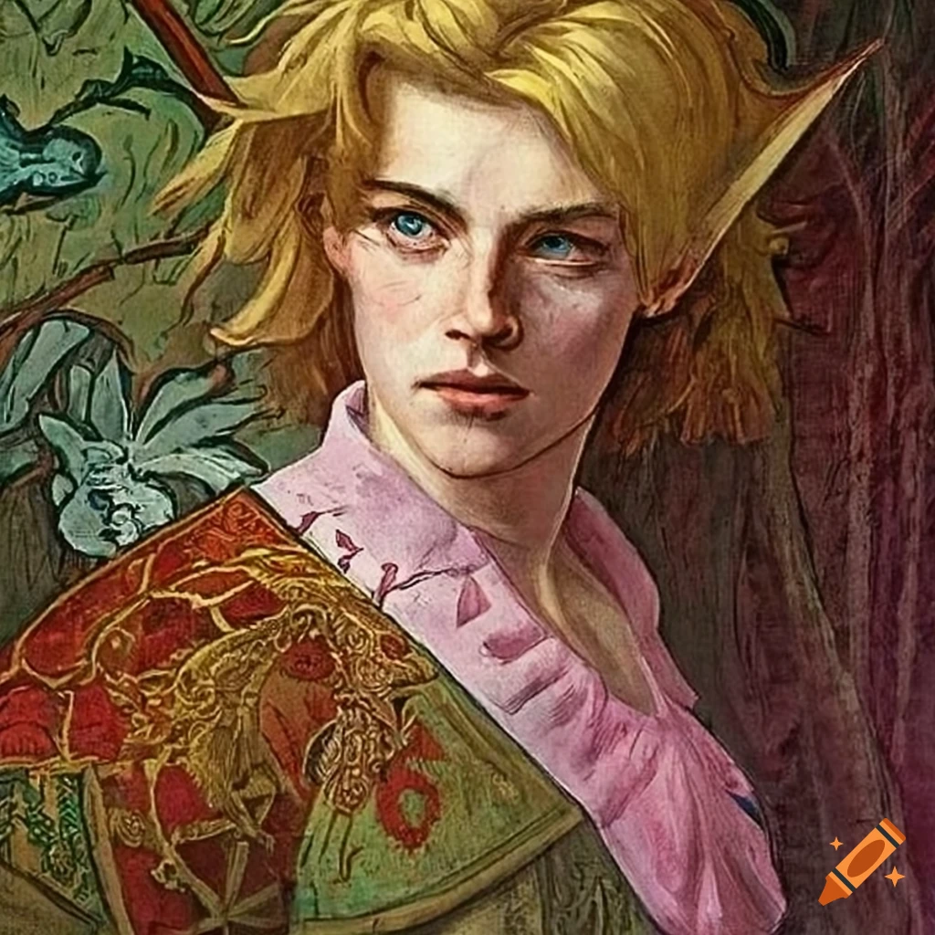 Portrait of ezreal with pink faerie court skin 1899 illustration by
