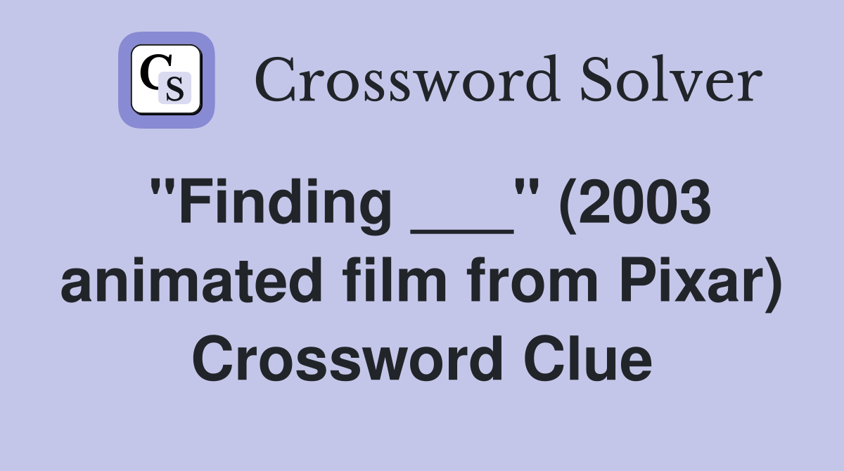 quot Finding quot (2003 animated film from Pixar) Crossword Clue Answers