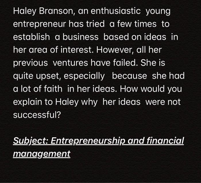 SOLVED: Haley Branson an enthusiastic young entrepreneur has tried a