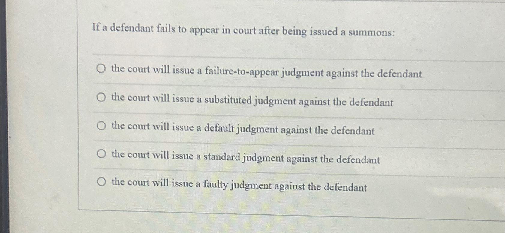 Solved If a defendant fails to appear in court after being Chegg com