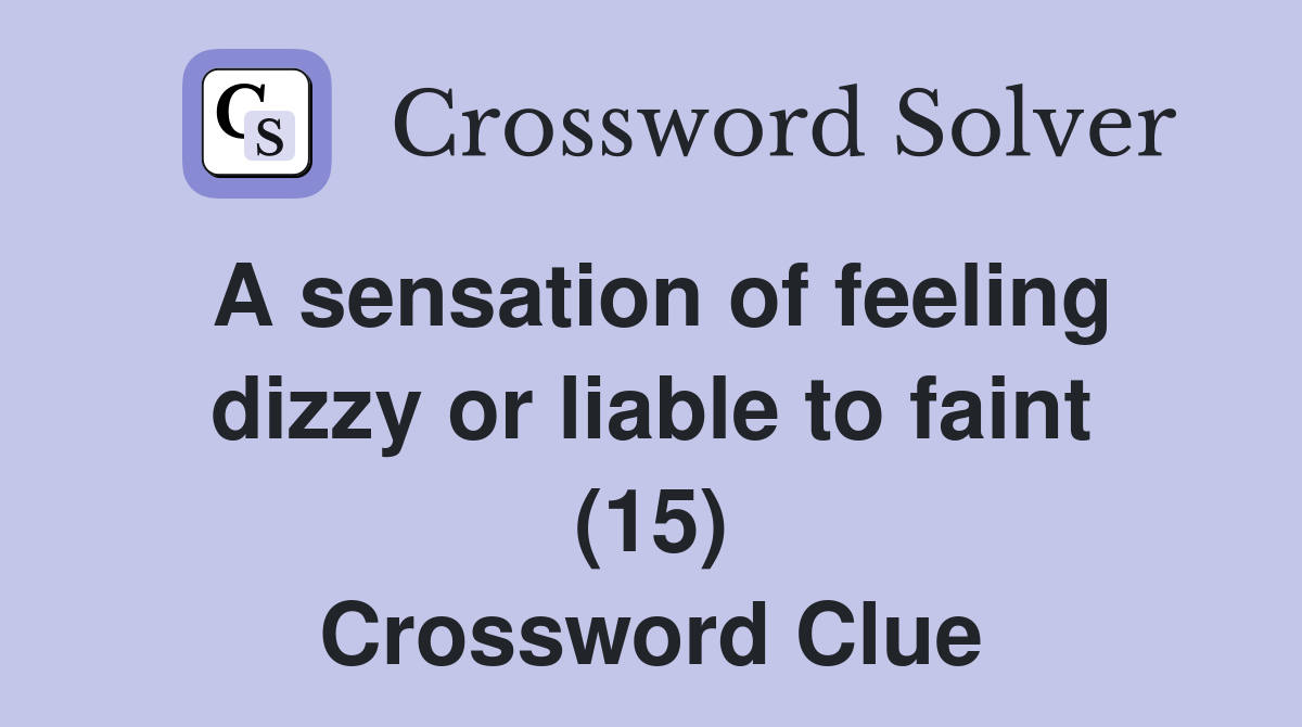 A sensation of feeling dizzy or liable to faint (15) Crossword Clue